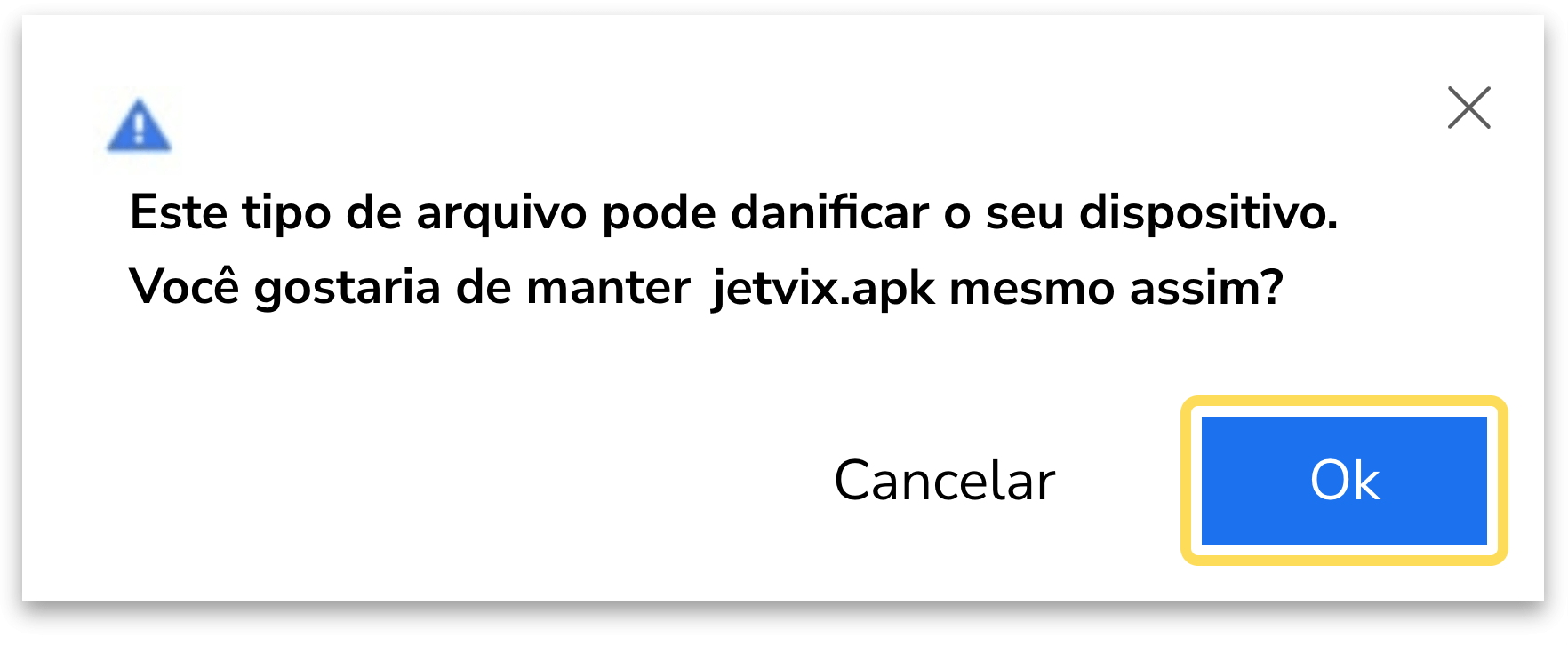 1. Depois de clicar no botão "Baixar", uma notificação irá aparecer. Clique em "OK".