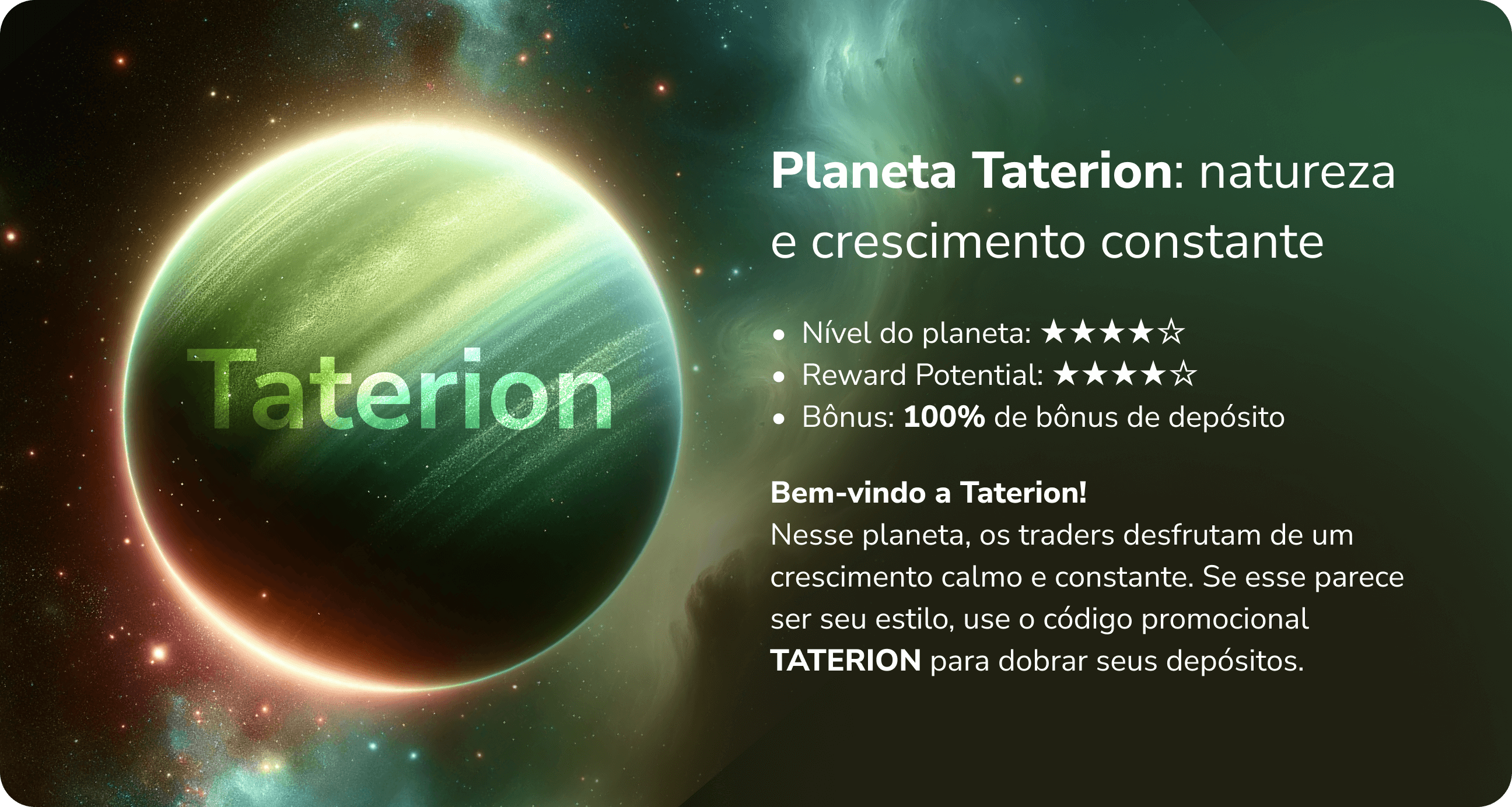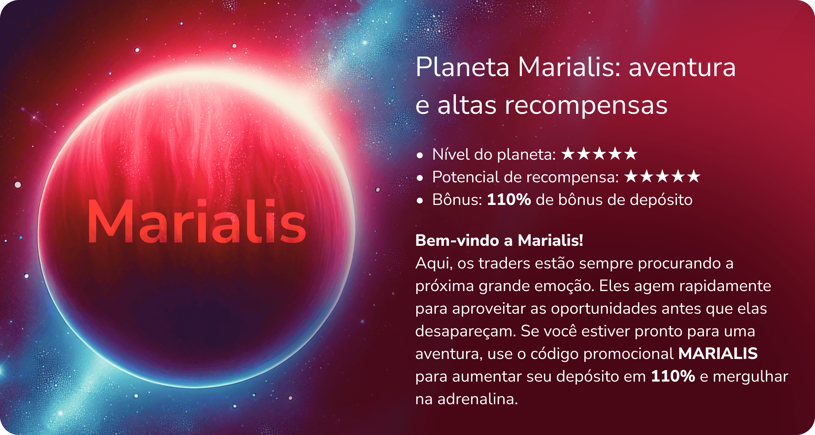 Junte-se a nós e receba até 110% de bônus de depósito. Escolha seu planeta agora!